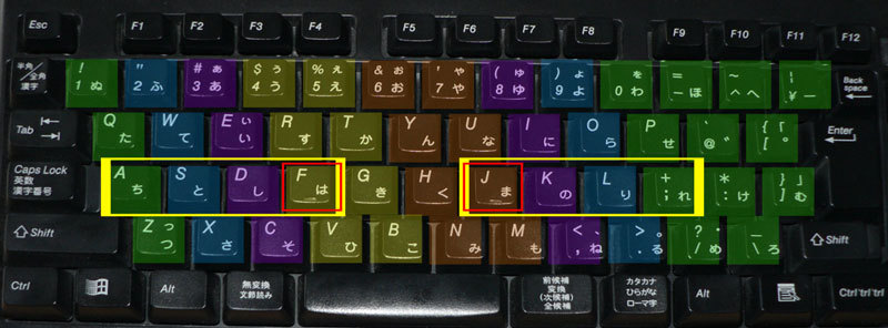 キーボードの「F」と「J」のところに突起があるでしょ?